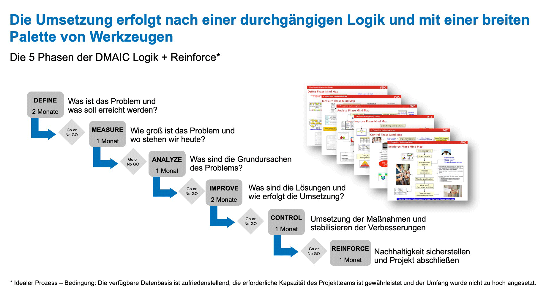 Mit Hilfe der bewährten DMAIC-Methode können Verschwendungen systematisch aufgezeigt und Verbesserungen nachhaltig erfolgreich umgesetzt werden.