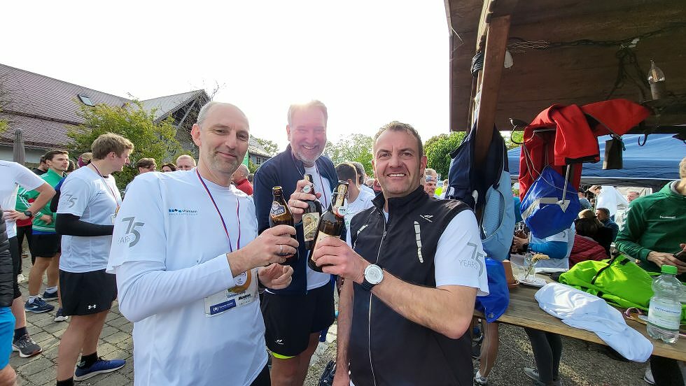 „Ein gelun­genes Sport-Event, das den Team­spirit fördert und uns im gemein­samen Auftritt mit dem 75 Jahre Uhlmann-Trikot als Mann­schaft zusam­men­schweißt. Unser Ziel: 2024 als grup­pen­stärkstes Team an den Start zu gehen“ 🙂
