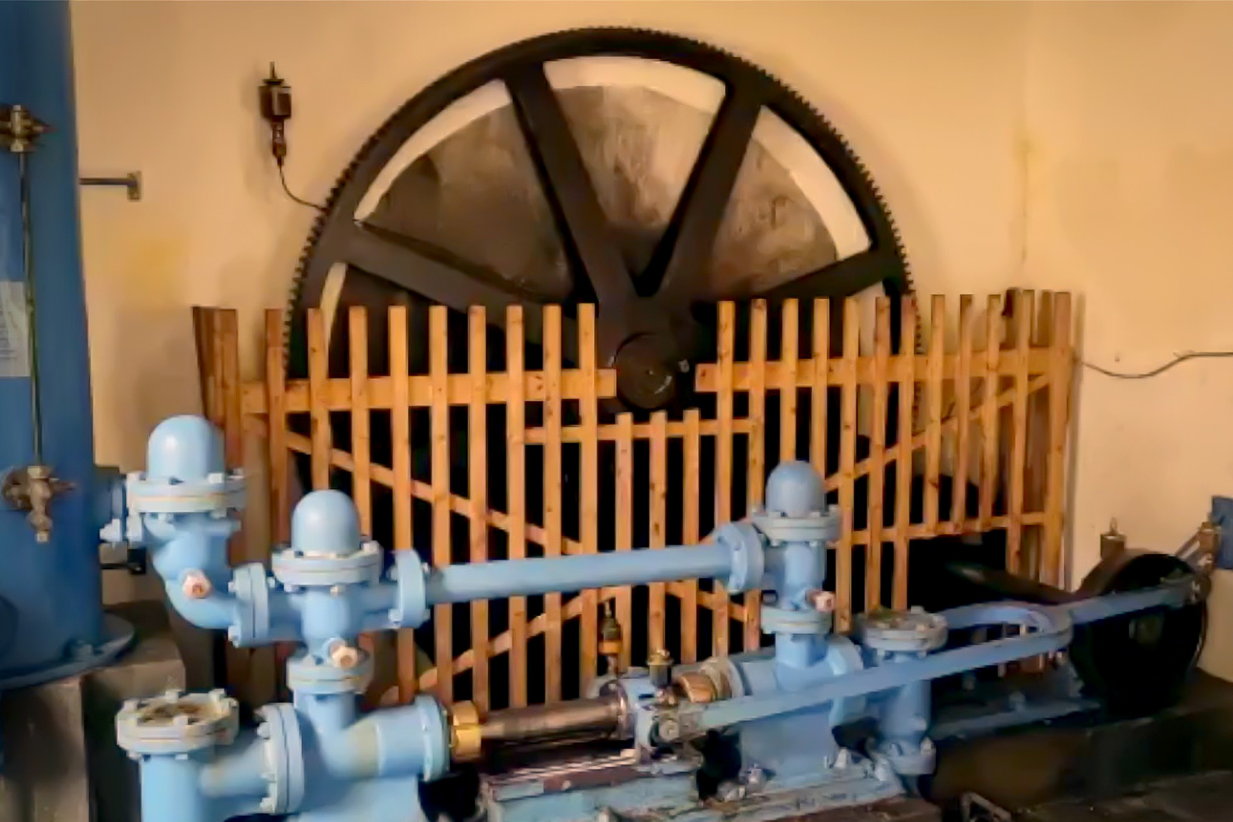 To enable the pumps to continue working even when the water level of the Waldach was low, in 1911 the pumping station was fitted with an 8-horsepower gasoline engine. In 1948, it was connected to the power grid, allowing an electric motor to be subsequently used as a substitute drive. The entire facility, including the weir, millstream and pumping station, has been protected as a cultural and historical industrial monument since 2000. However, the town’s own water supply was taken out of service in 1991 due to contamination of the drinking water.