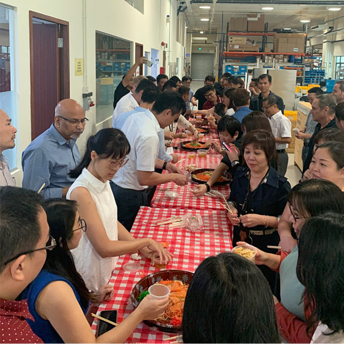 The day begins at 9 am for the Uhlmann Singapore workforce, provided that employees are not involved in production of the Blister machine B 1240 or the Cartoner C 130. Those in a time zone seven hours ahead of the company headquarters can safely make a later start because correspondence with Laupheim can wait until after lunch; or until after the afternoon tea break – a reminder of the British colonial era. Our Singapore location does not have a canteen, but the colleagues can eat their way around the whole world in the snack bars and restaurants. The internationality of Singapore is reflected in the range of food available.