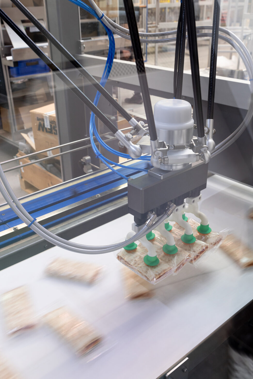 Goldfuß systems enable customers to operate their production lines unmanned. “They can take over tasks day and night that are too difficult, monotonous or even hazardous to health.” This includes, for example, handling heavy cartons at different heights or working with carcinogenic substances. While a high output rate is required in the packaging sector, the focus in the laboratory is on safety and traceability. The field of environment automation is a core competence of Goldfuß engineering. Here, magazines and bunkers are filled with packaging materials. The degree of automation no longer ends at the removal of pallets but extends to automatic pallet exchange and connection to driverless transport systems.