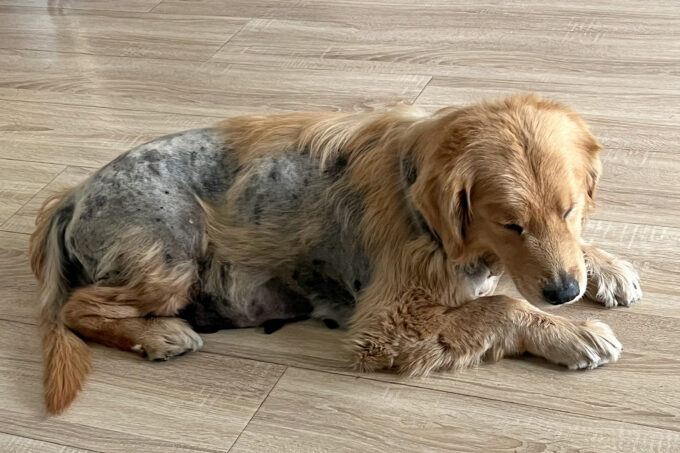 It’s February 15 and Florian Biela is on his way to work when he spots a dog in distress at the side of the road. “I thought something was wrong with him,” he recalls. Without further ado, he gives the dog something to drink and realizes that the golden retriever urgently needs help! Biela decides to look after him and takes him to the vet. “He was diagnosed with multiple issues, including a narrowed urethra, bladder stones and a tumor. The smallest problem was a skin infection which left him with bald patches all over his body,” Biela says looking back.