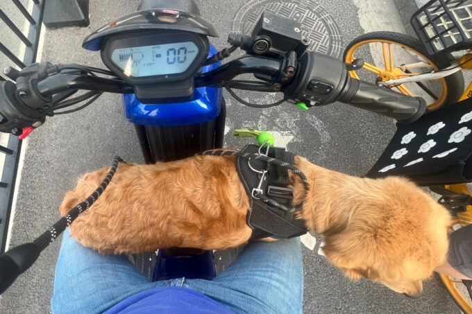 After numerous examinations and a five-hour operation, the patient is safe for the time being. But the vet bill is equivalent to almost 3,500 euros. To cover this considerable sum, Biela and his friends set up a fundraising campaign to secure the golden retriever’s medical care. After two weeks in the veterinary clinic, the dog is allowed to go to his new home: with Florian Biela. Today, the poor animal from back then is called Da Tou, which means “big head” in Chinese: and it really is big compared to his otherwise slender build. Da Tou and his master are inseparable – and passionate two-wheeler fans: “Da Tou is rather a quiet dog, but he does love to ride along with me on the scooter!” says Biela. The 34-year-old always has had a soft spot for dogs.