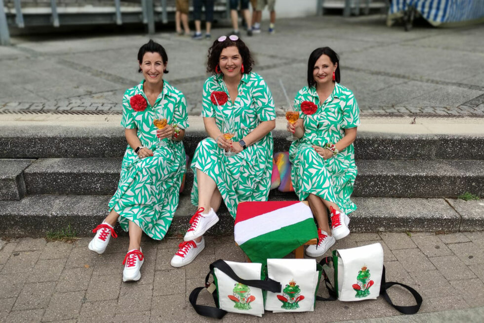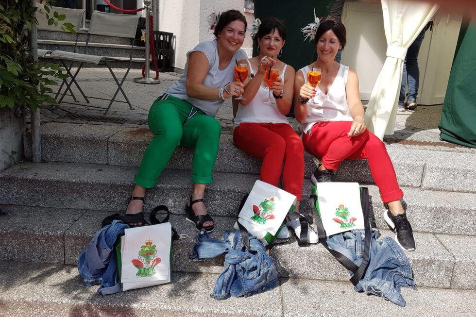 We simply love going to the children’s festival. It started with a bag with a motif – a “Laupfrosch” with a little crown in the Laupheim colors, limited edition. The following year we added a headdress, of course in green, red and white… and so it went on, with ever new ideas, until we had our first children’s festival dress, which a friend sewed for us.
