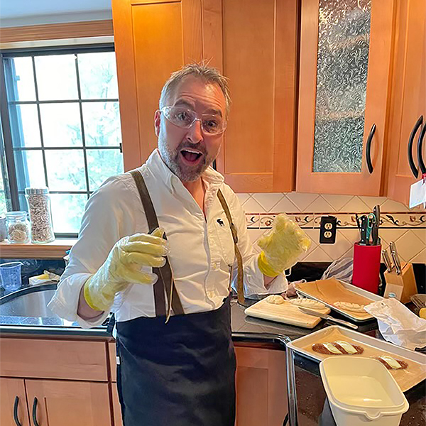 Since I can’t spend Christmas with my family in Germany this year, I’m baking homemade pretzels. When using caustic soda, the highest level of safety is required – hence the protective clothing.